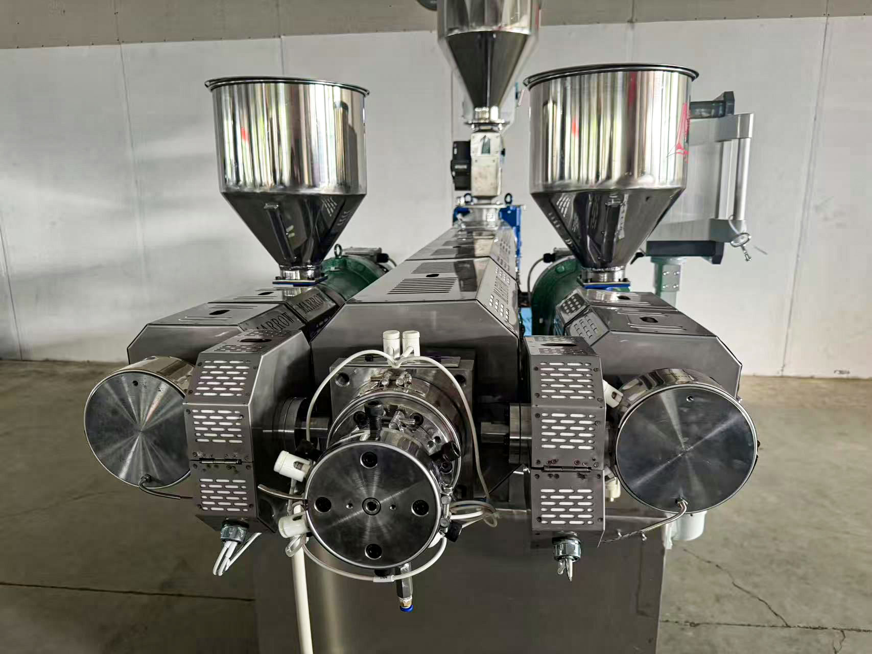 1、 专利结构65mm螺杆设计,33:1长径比,满足PLA和PP料的生产,173轮箱,30KW高效节能型伺服电机;